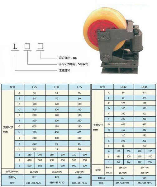 - 滾輪罐耳原理新型滾輪罐耳的工作原理:滾輪通過軸與擺架連接,擺架通過銷軸與支座及緩沖器與復(fù)合調(diào)整器連接,緩沖器與復(fù)合調(diào)整器4通過銷軸與擺架及支座連接,緩沖器與復(fù)合調(diào)整器由殼體Ⅰ和殼體Ⅱ、碟形彈簧、彈簧予緊力調(diào)整螺母、導(dǎo)桿共同組成,通過轉(zhuǎn)動殼體Ⅱ可調(diào)整懸掛長度,從而調(diào)整滾輪位置,用鐵絲可鎖緊殼體Ⅰ、Ⅱ;調(diào)整螺母、調(diào)整工具孔用于插入棒狀工具以使螺紋相對轉(zhuǎn)動;懸掛孔用于與擺架和支座連接。滾輪罐耳以液壓緩沖器取代傳統(tǒng)的緩沖結(jié)構(gòu),承載能力大、運行平穩(wěn)、可靠性高、壽命長、調(diào)整維修方便。 滾輪罐耳底座等零部件采用新型材料,整體結(jié)構(gòu)強度更高,抗沖擊性強。 緩沖器復(fù)位壓力小,可有效地避免滾輪與罐道產(chǎn)生異常碰撞。通過杠桿傳遞到減震筒上,同時起到導(dǎo)向、緩沖與穩(wěn)定作用。罐道與罐耳由滑動摩擦變?yōu)闈L動摩擦,因此減少了動力消耗,降低了噪音,罐道和罐耳的磨損也大大降低。從而,提高了罐道和罐耳的使用壽命。滾輪罐耳標(biāo)準(zhǔn)【滾輪罐耳國標(biāo)標(biāo)準(zhǔn)】MT236-2011(國標(biāo)):本標(biāo)準(zhǔn)規(guī)定了矩形鋼雄道滾輪罐耳(以下簡稱滾輪罐耳) 的產(chǎn)品分類、技術(shù)要求、試驗方法、檢驗 規(guī)則、標(biāo)志、包裝、運輸和貯存。 滾輪罐耳本標(biāo)準(zhǔn)適用于立井提升容器(箕斗、罐籠、平衡錘)沿矩形鋼罐道導(dǎo)向的滾輪罐耳。發(fā)布日期:2011-04-12 實施日期:2011-09-01 代替標(biāo)準(zhǔn):MT236-1991國家安全生產(chǎn)監(jiān)督管理總局公告2011年第13號引用標(biāo)準(zhǔn):GB/T 700;GB/T 985.1;GB/T 1184-1996;GB/T 1804-2000;GB/T 9286;GB/T 10111;JB/T 5000.3-2007;JB/T 5000.10;JB/T 5000.12-2007;MT/T 154.1;《煤礦安全規(guī)程》 國家安全生產(chǎn)監(jiān)管理總局、國家煤礦監(jiān)察局【滾輪罐耳現(xiàn)場評審必須具備的引用標(biāo)準(zhǔn)】GB/T1972 碟形彈簧GB/T1804 一般公差 未注公差的線性和角度尺寸的公差GB/T1184 形狀和位置公差 未注公差值MT113 煤礦井下用聚合物制品阻燃抗靜電性通用試驗方法和判定規(guī)則熱銷型號:L25滾輪罐耳L25滾輪罐耳-技術(shù)參數(shù):型號: L25預(yù)緊力(kg): 300水平最大緩沖力(KN):12緩沖行程(mm): 13使用提升速度(m/s): 8-12L25滾輪罐耳-主要特點:L25滾輪罐耳輪軸采用橡膠密封語機械密封相結(jié)合的組合密封方式,膠圈采用高耐磨材料,安全可靠,壽命長。1.支架擺動銷軸裝有高分子耐磨軸套,使用中不產(chǎn)生松動現(xiàn)象。2.緩沖裝置采用符合彈性體緩沖結(jié)構(gòu),性能穩(wěn)定,免維護。3.可用緩沖裝置來方便的調(diào)整滾輪與罐道間的位置。4.表面防范采用鍍鋅刷漆新工藝,防腐防銹性能好。滾輪罐耳由中間布置一個,左右側(cè)各一個組成一組。滾輪罐耳可根據(jù)用戶要求進行設(shè)計。滾輪罐耳-規(guī)格型號滾輪罐耳分為L系列單輪滾輪罐耳和LS雙輪滾輪罐耳。L系列單輪滾輪罐耳型號有:L25,L30,L35,L40,L45;LS系列雙輪滾輪罐耳型號有:LS30,LS35,LS40,LS45。