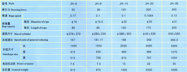 • JH-8礦用回柱絞車又稱慢速絞車,是供煤礦井下采煤工作面回柱放頂之用。JH-8礦用回柱絞車由于它的高度較低重量又輕,特別適用于薄煤層和急傾斜煤層采煤工作面,以及各種采煤工作面回收沉入底板或被矸石壓埋的金屬支柱。隨著機械化采煤程度的提高,它越來越多地被廣泛用于機械化采煤工作面,作為安裝、回收牽引各種設備和備件之用。主要型號有:JH-5、JH-8、JH-14、JH-20、JH-30。產品均應有煤安標志。