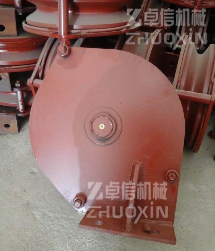 2 尾輪:掛在固定楔上用以引導尾繩,使耙斗返回迎頭,它主要由側(cè)板、繩輪、心軸、吊勾等主要零件組成。