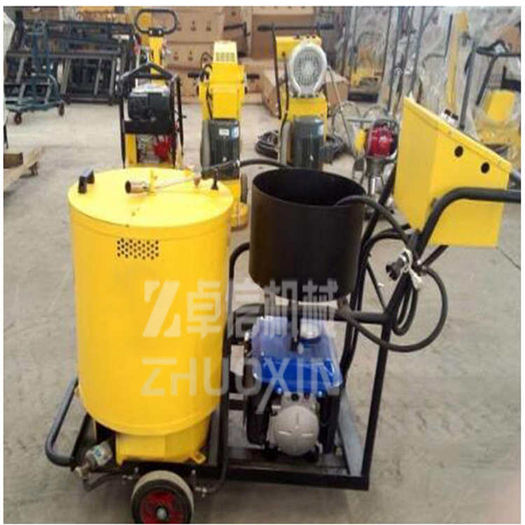 - 灌縫機用途:用于瀝青或水泥路面裂縫瀝青灌縫。灌縫機優(yōu)勢特點:1,導(dǎo)熱油間接加熱物料,循環(huán)保溫,進(jìn)口柴油燃燒機為加熱源,物料受熱均勻,智能傳感器自動檢測溫度,使物料不炭化、不變性,熔化時間短,經(jīng)濟、安全、環(huán)保;2,全程電加熱出料軟管,免清洗,彎折度充分,最大程度滿足橫向、縱向裂縫的多項施工需求,以保證最大施工面積;3,全程電子控制,加熱溫度、出料管加熱、燃燒機工作、瀝青泵工作、燃料狀態(tài)、故障報警等均為適時顯示,實現(xiàn)電子自動控制一體化;4,國際著名品牌發(fā)電機,可以為整機提供穩(wěn)定、高效的輸出,工作穩(wěn)定、可靠;5,灌縫槍把人性化手柄設(shè)計,在灌縫槍把手上裝有電控開關(guān),可遠(yuǎn)程控制瀝青泵,避免浪費,衛(wèi)生、清潔;6,高溫專業(yè)瀝青泵,輸料壓力大,物料嵌入裂縫深,施工質(zhì)量有保證,物料流量無級調(diào)整,適合各種寬度及形狀的裂縫修補作業(yè)。灌縫機工作原理:汽油灌縫機主要有手推式和自行式手持灌縫管操作,采用進(jìn)口柴油燃燒器加熱。在工作時首先在料箱內(nèi)加入瀝青或灌縫膠,啟動發(fā)電機供電,依次間斷打開導(dǎo)熱油泵開關(guān),燃燒器開關(guān),出料管加熱開關(guān);調(diào)整自動溫控系統(tǒng)與材料的溫度相同,通過柴油燃燒器自動加熱熔料箱內(nèi)導(dǎo)熱油開始升溫(拖式為強制循環(huán))使材料融化,溫度是通過自控系統(tǒng)來控制。溶料時間大約30-40分鐘左右。在材料融化、出料管溫度達(dá)到后可以進(jìn)行工作。手持灌縫管對正裂縫灌縫處理。瀝青泵的出料流量可調(diào)。在工作過程中隨時添加材料保證工作的連續(xù)性。注意:在灌縫前要對裂縫內(nèi)的塵土進(jìn)行清縫處理。小型灌縫機采用液化氣加熱系統(tǒng),導(dǎo)熱油循環(huán),使瀝青或灌縫膠快速融化,通過瀝青泵的壓力由出料口出料而達(dá)到裂縫處理的效果。通過壓力注射式灌縫,使材料和縫壁緊密結(jié)合,轉(zhuǎn)向靈活的萬向輪跟蹤裂縫,使灌縫效果美觀。 由于灌縫材料使用瀝青或灌縫膠,在溫度較低時容易凝固,灌縫機配有雅馬哈發(fā)電機組提供整機動力,灌縫機在出料管部位采用恒溫控制系統(tǒng),避免材料燒焦老化,保證出料的順暢。灌縫機目前市場基本趨向于功能齊全的大型灌縫機,小型灌縫機更多用于鄉(xiāng)村公路路面養(yǎng)護。容量45L。灌縫機特點(1) 手推式、獨立動力,輕巧實用可靠(2)熱效率提高2~3倍,縮短了整個作業(yè)時間。(3)采用新的工藝和國外技術(shù),提高了灌縫的質(zhì)量,降低了成本。(4)整機配備發(fā)電機組,可以提供充足動力。(5)增加攪拌系統(tǒng)使加熱快速均勻。(6)適用于普通瀝青和灌縫膠材料;灌縫料通過瀝青泵輸出,流量速度可調(diào)節(jié)。(7)出料管道采用電加熱系統(tǒng),有效的杜絕灌縫料在軟管中冷凝問題,同時減少人工清理軟管的次數(shù)。(8)控制面板集中操作,簡便省力。適用范圍/灌縫機灌縫機主要用于瀝青路面、水泥路面、場地的表面裂縫處理。灌縫機主要特點:1、集開槽灌縫工藝所有功能于一身,可自行、拖掛兩用,其全套的裂縫處治設(shè)備,保證了高效的施工速度和優(yōu)質(zhì)的施工質(zhì)量。2、配裝液壓自行底盤,人工控制行走,比單一拖掛式設(shè)備節(jié)省專用車等額外附加費用。方向盤式操控,手控前進(jìn)、后倒,自行時液壓制動,調(diào)節(jié)自行速度.3、車載熱氣噴槍適用于低溫潮濕地區(qū),可快速將縫內(nèi)烘干,增加密封材料與縫壁粘結(jié)。4、整套設(shè)備上裝配了車載吊裝機,可在自行底盤上方便裝卸開槽機。5、恒溫控制技術(shù)的運用,確保密封膠材料在加熱和使用過程中不焦化、不冷凝、不阻塞、流膠順暢。6、液晶雙顯儀表盤統(tǒng)一操控,集中顯示油溫、料溫和加熱軟管的設(shè)定溫度及實際溫度。7、功能齊全、性能穩(wěn)定是市政、高速公路養(yǎng)護中心處治路面裂縫的理想設(shè)備。灌縫機主要特點:1、手推式、獨立動力,萬向輪,適應(yīng)無規(guī)則縫隙灌縫;2、機械式組合螺桿擠壓發(fā)熱裝置,料溫穩(wěn)定,壓力式灌入,灌縫質(zhì)量好;3、輔以尾氣、電加熱手段,預(yù)熱時間短,不燒壞灌縫料;4、小型離合變速傳遞裝置,精配本田發(fā)動機,耐用性好,適合班站使用;5、噴油管采用金屬軟管,接觸縫隙灌入填灌料,隨動性好。灌縫機性能優(yōu)勢/灌縫機1.傳統(tǒng)熱灌不能防水:普通瀝青的彈性恢復(fù)力和粘接力很差,起不到防水作用傳統(tǒng)熱灌不能防水2.傳統(tǒng)灌縫成本高:短期來看,傳統(tǒng)的便宜,專業(yè)的灌縫投入大;長期來看,傳統(tǒng)累計的費用高,而專業(yè)的灌縫一次性作業(yè)可使用壽命可達(dá)5年以上3.傳統(tǒng)熱灌不能防水重復(fù)施工:工人長時間路上作業(yè),交通事故增加,交通壓力增大;4.傳統(tǒng)熱灌不能防水不環(huán)保:材料耐高溫抗低溫差,材料脫落對路面造成污染;5.傳統(tǒng)熱灌不能防水使用壽命短,每年都需要灌縫灌縫機售后服務(wù)及交付說明1、灌縫機性價比說明:同產(chǎn)品質(zhì)量條件下,我公司不以降低性能、更改產(chǎn)品零部件為代價,給出最低最實在的價格。(可根據(jù)客戶要求進(jìn)行產(chǎn)品的生產(chǎn)配置)2、灌縫機交貨說明:按供貨期交貨,若有特殊情況,需提前交