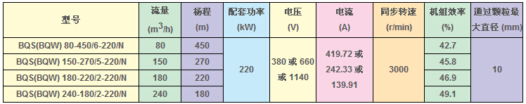 BQS(W)礦用隔爆型排污排沙潛水電泵技術參數(shù):