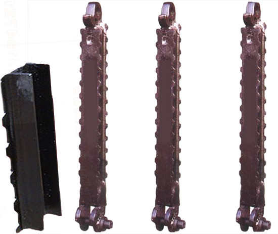 雙楔頂梁是一種鉸接式的頂梁,它可與各種類型單體金屬支柱配合組成金屬支架,供煤礦在水平及緩傾斜回采工作面支護的一種高強度頂梁。雙楔頂梁由于這種頂梁能懸臂支護工作面煤壁前邊的運輸機道上面的頂板,使煤壁與支柱間有較大的無支護空間。故為采用新型采煤機械和可彎曲運輸機,實現(xiàn)采煤一般機械化提供了條件,是高檔普采和新高檔采技術必要配套設備.