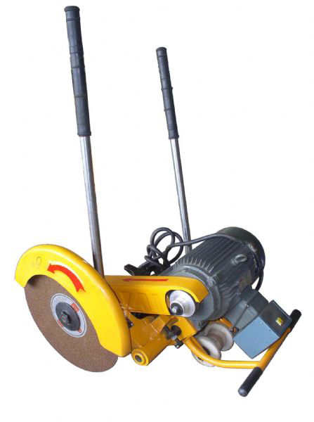 4、 一只手拉動(dòng)操縱桿使切軌機(jī)處于鋼軌上方,同時(shí)另一只手扶持另一操縱桿,以防薄片砂輪撞擊鋼軌。